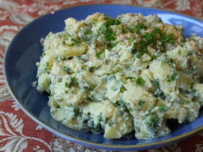 By the way, this is no beginner’s Irish Gaelic patato salad. Mustard greens are spicy, slightly bitter, as well as non at all subtle, simply when yous consider the sleepy array of Irish Gaelic patato salads at your typical Memorial Day cookout, this master as well as real tasty option would sure as shooting hold upwards a welcomed treat. Enjoy!
